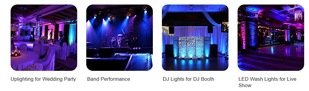 200 Watt Superpower - Powerful COB LED Par fixture with 200-Watt , allows 6 in 1 Red / Green / Blue / Amber / White / UV LED Par Can Light Smooth Color Mixing - With a 90-degree beam angle, produce wide washes and long distance stage lighting effects Professional Features - 6CH/10CH DMX modes, flicker-free operation and a 4-Button menu with digital display, daisy-chain up to 6-8 units (110V) together via the fixtures built-in In/Out power connectors.Easy Control - as well as any standard DMX512 control system. Flexible Design - Makes it ideal and equally suited to stage lighting, dance-floor washing, and up lighting for the wedding, in venues ranging from nightclubs to theaters and churches to concert halls.