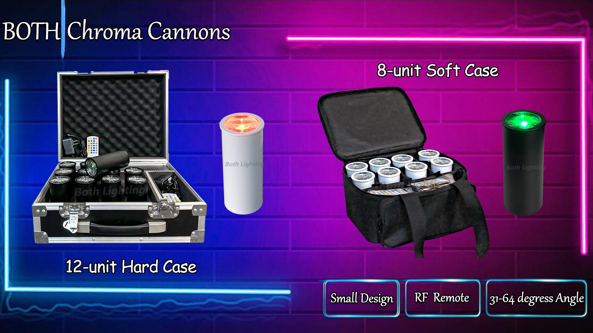 BOTH Chroma Cannons, designed to illuminate your special moments. Whether it’s a dreamy wedding, a romantic evening stroll, or a cozy backyard gathering, let the Chroma Cannons light up your memories.